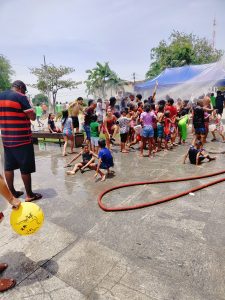 A programação contou com futebol de sabão, pula-pula, campeonato de travinha e, para amenizar o calorzão, o carro do Corpo de Bombeiros garantiu um animado banho de mangueira, que alegrou a criançada e até os adultos entraram na brincadeira, aproveitando para se refrescar e se divertir juntos.