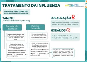 Diante do cenário, a Secretaria de Municipal da Saúde de São Luis segue distribuindo o medicamento, que pode ser retirado no posto de saúde do bairro do Ipase Alto. Para que o paciente possa receber o TAMIFLU, basta comparecer a unidade de saúde com a receita do paciente.